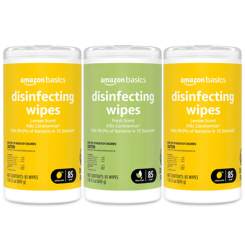Amazon Basics Wipes, Lemon & Fresh Scent, Sanitizes, Cleans & Deodorizes, 255 Count (3 Packs of 85)