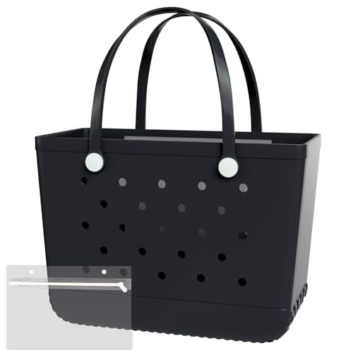Heibbao X-Large Rubber Beach Bag Tote Bag with Waterproof Zipper Inner Bag, Washable Durable Tote Bag, Storage bags (Black)