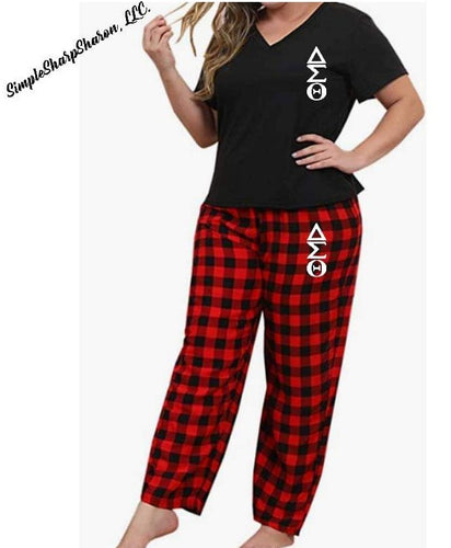 DST Customizable Regular and Plus Size Black Top Buffalo Plaid Relaxed Fit Pajamas
