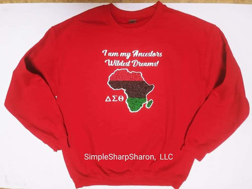 Red Sweatshirt with "I am my Ancestors Wildest Dreams!" Theme