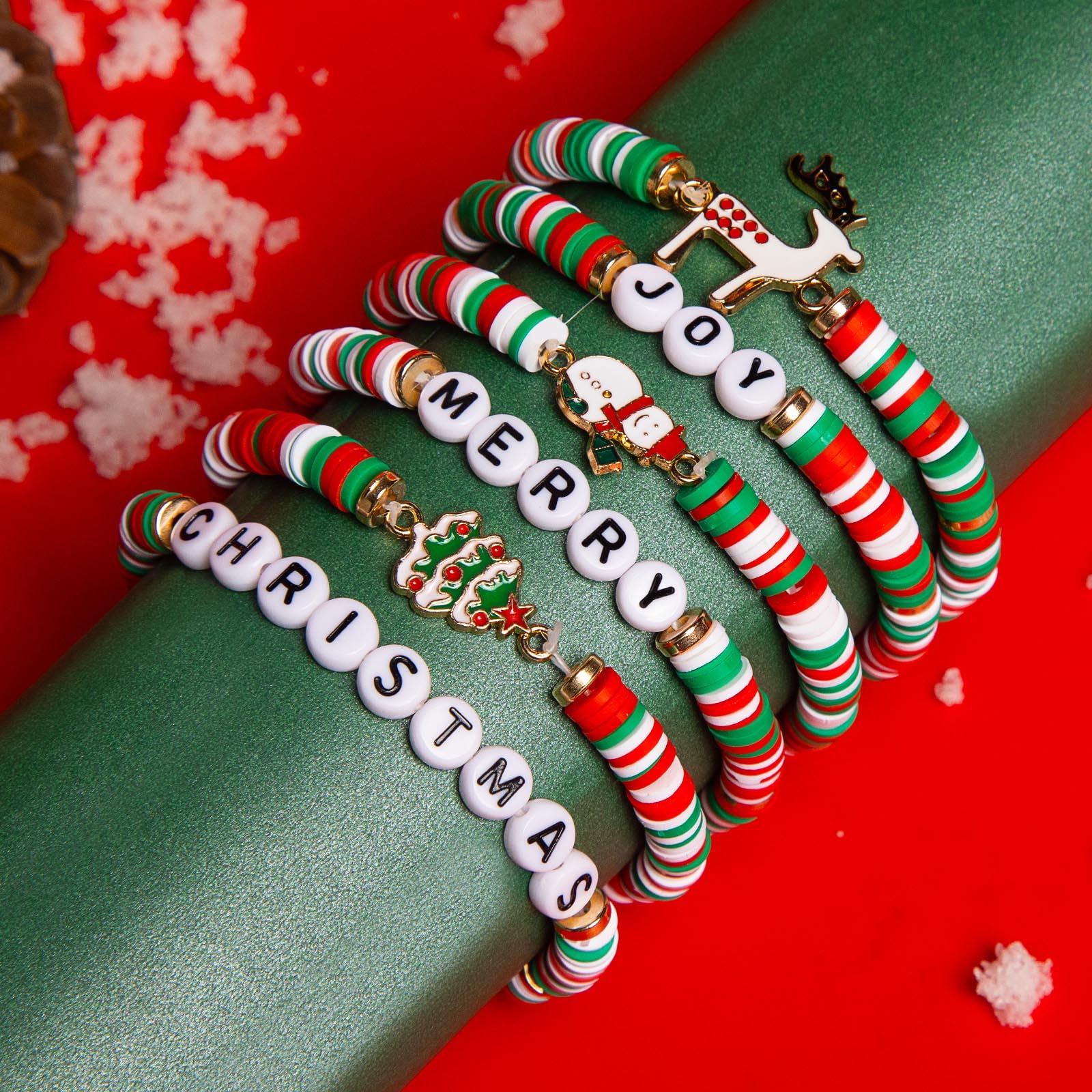 - 🎄𝑪𝒉𝒓𝒊𝒔𝒕𝒎𝒂𝒔-𝑻𝒉𝒆𝒎𝒆𝒅 𝑫𝒆𝒔𝒊𝒈𝒏: These bracelets feature festive words like "Joy" and "Merry," perfect for the holiday season. The candy-inspired colors and styles add a playful touch to any outfit, making them ideal for Christmas celebrations.