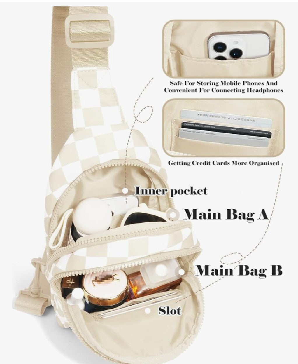Beige and White Checkerprint DST Sling