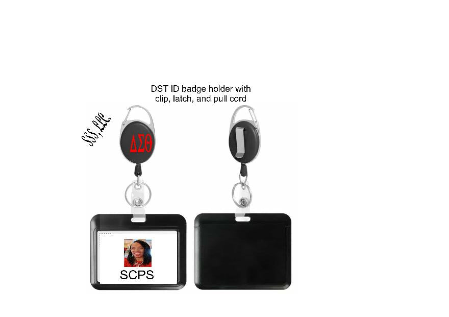 Do you have a DST badge reel and holder for your work badge? If not check out the one I offer through my business. I offer the red badge in a vertical and horizontal style. This badge latch, clip, and a retractable reel that will extend 24" . Get yours today!